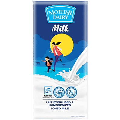 10x Mother Dairy Uht Liquid Milk Carton, (1 Liter each) – Pack of 10