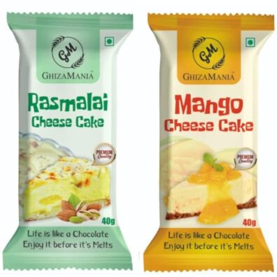 Ghizamani Special Pack – 1 Mango Cheese Cake Chocolate Bar. 1 Rasmalai Cheese Cake Chocolate bar | 40g | Pack Of 2 | White Chocolate Bar | Snacking And Gifting |