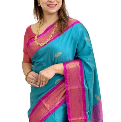 Enthone Women’s Pure Cotton Jamdani Saree – Green