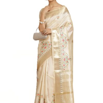 Zwab Women’s Cotton Silk Soft Jamdani Sarees With Attach Unstitched Blouse Piece (Off White)