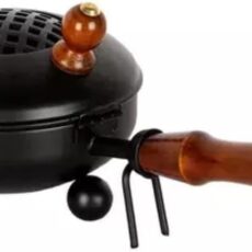 Dhoop Dani Dhuni Loban Burner, Charcoal Incense Burner with Wooden Handle for Puja, Home Temple, Home Decor, Office