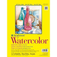 Strathmore 300 Series Watercolor 9”X12” Natural White Medium & Smooth Grain 300 Gsm Paper, Short-Side Tape Bound Pad Of 12 Sheets