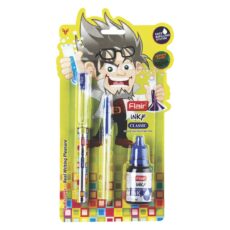 Flair Inky Series Silver Liquid Ink Fountain Pen Blister Pack, Blue Ink, Pack of 6