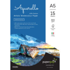 Paper Pep Artists’ Aquerello 60% Cotton Watercolour Paper 300Gsm Cold Pressed A5 Pack Of 15