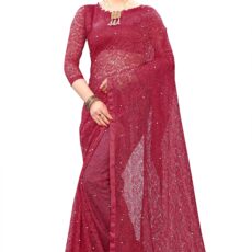 LOROFY Women’s Net Saree (With Blouse_Free Size) (Maroon)