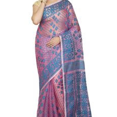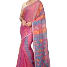 BENGAL HANDLOOM Exclusive Women’s Cotton Silk Dhakai Allover Soft Jamdani Saree, Pink