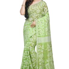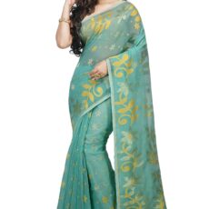 Bengal Handloom Women’s Jamdani Cotton Saree Without Blouse Piece (Pakhid_Green)