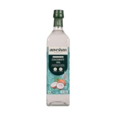 Anveshan Wood Pressed Coconut Oil – 1 Litre | Glass Bottle | Kolhu/Kacchi Ghani/Chekku | Natural | Chemical-Free | Coconut Oil for baby massage | Cold Pressed Coconut Oil for Cooking.