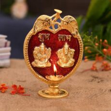 Collectible India Laxmi Ganesha Diya Idol Statue- Brass Gold Finish Diya Oil Lamp Ganesh Lakshmi Showpiece Shubh Labh Home Office Decor Pujan Puja Diwali Decoration (Golden)