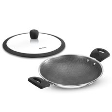 Hawkins 1.25L Breakfast Pan, Nonstick Triply Stainless Steel Appachatty with Glass Lid, Chetty Pan, Appam Patra, Honeycomb Round Bottom Small Kadai, Siler (NSA125G)