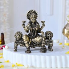 CraftVatika Brass Maa Lakshmi Devi Idol Statue Sitting on Throne – Laxmi Ji Ki Murti for Pooja Temple Room Diwali Gift & Home Décor Items (4 Inch Height)