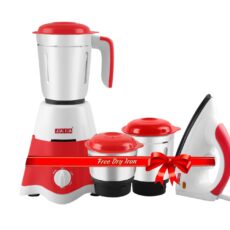 Jaia Stylie 550 Watt 3 Jar Mixer Grinder with 3 Speed Control and 1000 Watt Dry Non-Stick soleplate Iron Super Combo (Red & White,1 Year Warranty)