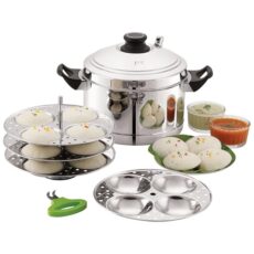 JVL Stainless Steel Idli Cooker Gas & Induction Compatible Idly, Dhoklas, Idiyappam, Momo Steamer (Stainless Steel, 4 Plates)