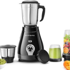 Longway Super Dlx 4 Jar 750 Watt Mixer Grinder – Black & Grey | ABS body | Heavy Duty Motor | Nano-grinding technology | 304 Grade Stainless Steel Blade | Noise levels 80-90 DB |1 Years warranty