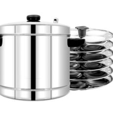 Pigeon Classic 6 Stainless Steel Idli Maker /Cooker with whistle indicator – 6 Plates (24 Idlis) / Idli Steamer/Idly Cooker Pot/ Stainless Steel Idli Maker with Silver Lid – Fluffy Idlies – Induction & Gas Base – 1 Year Warranty