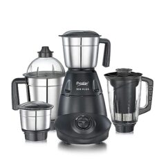 Prestige Iris Pro 750 Watts Mixer Grinder with 4 Jars (3 Stainless Steel Jars + 1 Juicer Jar)|4 Super-Efficient Stainless Blades |Jar Storage Space Sturdy Handles |2 Years Warranty |Black