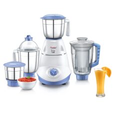 Prestige Iris 750 Watt Mixer Grinder with 3 Stainless Steel Jar + 1 Juicer Jar (White and Blue)