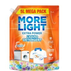 More Light Extra Power Liquid Detergent 5 Litre Pouch with Enzymatic Action Removes Tough Stain | Laundry Liquid Detergent with Refreshing Fragrance for Bucket Wash, Top Load & Front Load Machines