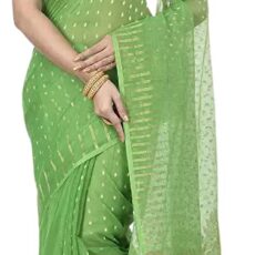 Piyari Fashion Womens Self Design Bollywood Cotton Silk Jamdani Saree Without Blouse Piece (Green)