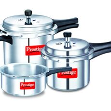 Prestige 2L+3L+5 L Popular Max outer lid Aluminium combo Pressure Cooker with polished finish|Deep lid controls spillage|Induction based|Straight wall|Pressure Indicator | Gasket-release system|Silver