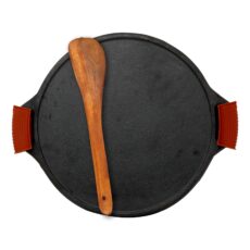 Rock Tawa Dosa Tawa 12 Inch Pre-Seasoned Cast Iron with Free Wooden Spatula and Silicon grip cover