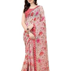 ROOP SUNDARI SAREES Women’s Stylish Floral Printed Georgette Fancy Saree With Blouse Piece Saree For Women Hit Sari Sadi(Grey&Pink_Multicolored_Free Size 6.30)