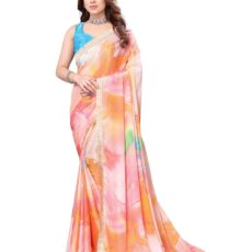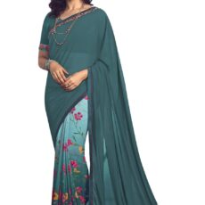 ROOP SUNDARI SAREES Women’s Georgette Printed Half & Half Saree For Girls With Jacquard Lace Border & Blouse Piece(A50 M PICH_Multicolored_Free Size 6.30 Mtr)
