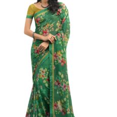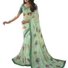 ROOP SUNDARI SAREES Women’s Floral Printed Georgette Stylish Saree For Women With Lace Work Blouse(A52 GREEN_Multicolored_Free Size 6.30 Mtr)