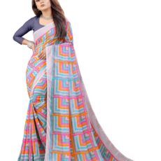 ROOP SUNDARI SAREES Women’s Block Square Printed Georgette Saree For Women Top Selling Hit Sari Sadi With Lace Border With Blouse(Satrangi_blue grey_Multicolored_Free Size 6.30)