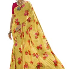 ROOP SUNDARI SAREES Women’s Floral Printed Georgette Stylish Saree For Women With Lace Work Blouse(A48 Yellow_Multicolored_Free Size 6.30 Mtr)