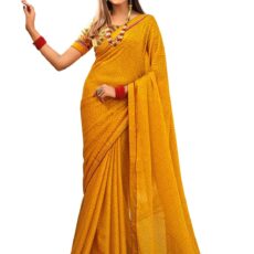 ROOP SUNDARI SAREES Women’s Bandhej Printed Chiffon Silk Saree For Women With Embroidery Lace Border & Banglori Silk Blouse(Mustard,Gold_Multicolored_Free Size 6.30 Mtr)