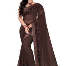 RIVA ENTERPRISE Georgette With Blouse Piece Saree (9C-9Lvv-T4Q8_Brown_Free Size, Womens)