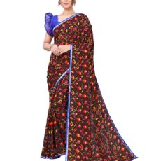 Tarshika Womens Georgette Printed Saree With Blouse Piece(SHIVANI BLACK_Free Size)