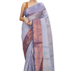 Laxmi Handloom Women’s Traditional Bengal Tant Handloom Pure Cotton Tangail Zari Border Saree without Blouse Piece (Grey)