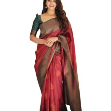 SGF11 Women’s Kanjivaram Soft Lichi Silk Saree With Blouse Piece (Maroon)
