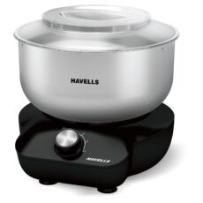Havells Hygiene Grande Atta Kneader Dough Maker with 5L SS Bowl, Up to 1 KG Dough Maker, 4 Speed, Aluminium Dough Hook, Transparent Anti Splatter Lid with Lock, Hands Free Operation, 2 Yr Warranty