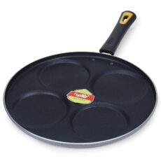 apsara kitchenware Diamond Aluminium Dura Big Non Stick Uttappa Tawa 4-Cavity with Handle for Mini Uttappa, Mini Pancake Maker, Mini Crepe Pan, Idli Pan Multi Snack Maker-Black