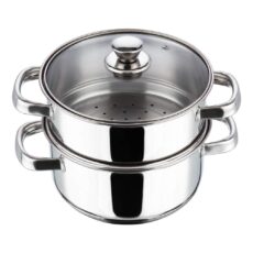 Vinod Stainless Steel Steamer 2 Tier with Glass Lid 18 cm | 2.5 mm Thick Base | Multi Purpose Momos, Modak Maker Steamer | Induction and Gas Base | 2 Year Warranty – Silver