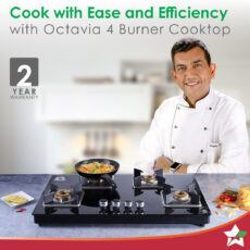Octavia 4 Burner Glass Hob Top Auto Cooktop | 8mm Toughened Glass | Auto Ignition | Forged Brass Burners | Stainless Steel Drip Tray | Anti-Skid Legs | Large & Heavy Pan support | LPG compatible | Black steel frame | 2 Year Warranty | Black