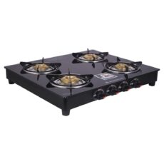Ruby 4 Burner Glass Cooktop, Black Toughened Glass with 1 Year Warranty, Ergonomic Knobs, Heat-Efficient Brass Burners, Stainless-steel Spill Tray, Manual Ignition