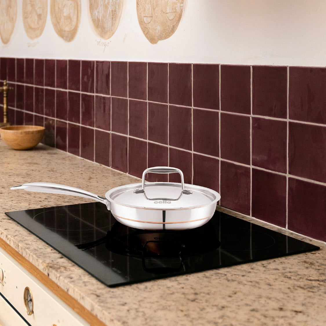 - Durable Stainless Steel Lid: The tri-ply fry pan comes with a durable stainless steel lid that fits snugly, allowing for efficient heat retention and moisture-locking, enhancing the flavors and tenderness of the food being cooked.