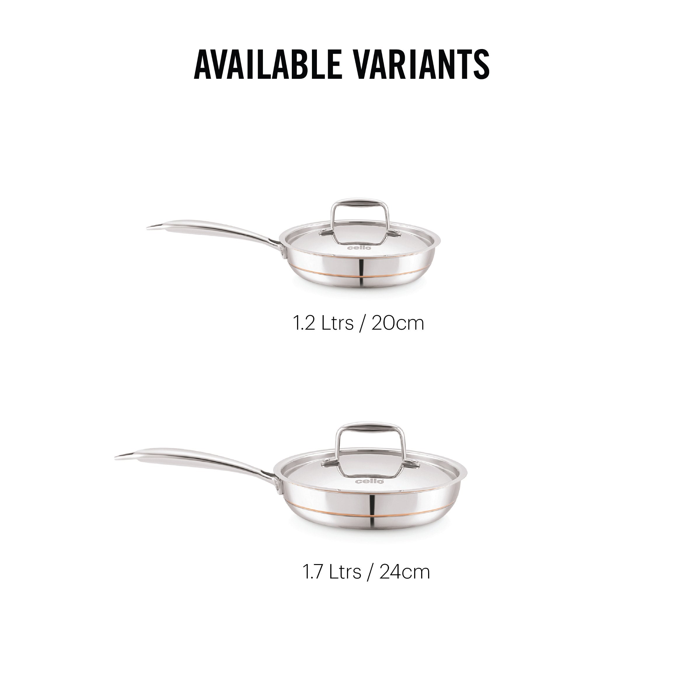 - Versatile Usage: A 5-ply stainless steel fry pan is highly versatile and suitable for various cooking tasks. It is ideal for frying, sautéing, searing, and browning a wide range of ingredients. The efficient heat distribution and durable construction make it a reliable choice for both home cooks and professional chefs; available in 1.2 Litres & 1.7 Litres, Colour – Black