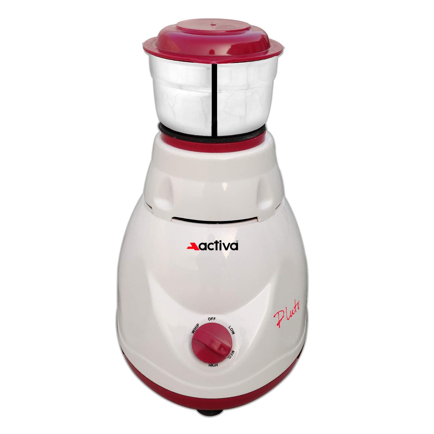 - ✅POWERFUL 500 WATT MOTOR: ACTIVA Pluto Mixer Grinder Comprises of a Low-Maintenance And Really Powerful 500 Watt Motor, Which Offers Seamless Trouble-Free Working For Several Years. The Motor is Strong For Top-Grade Grinding and Mixing of The Hardest Ingredients. The Switch Knobs Assist The User To Change The Speed Levels Without Any Fuss.