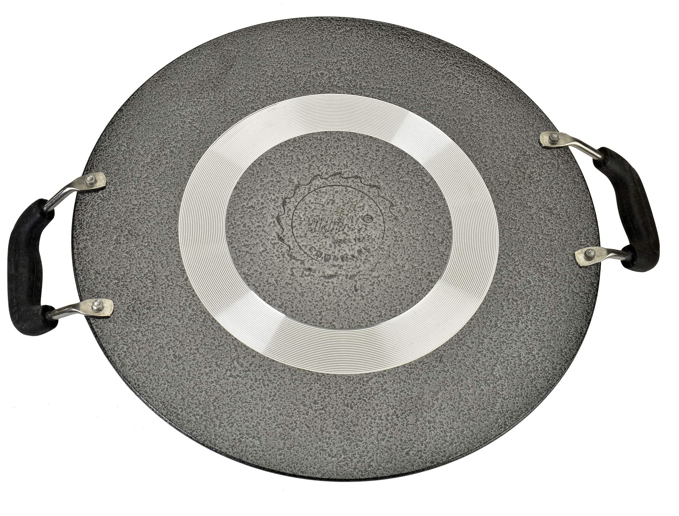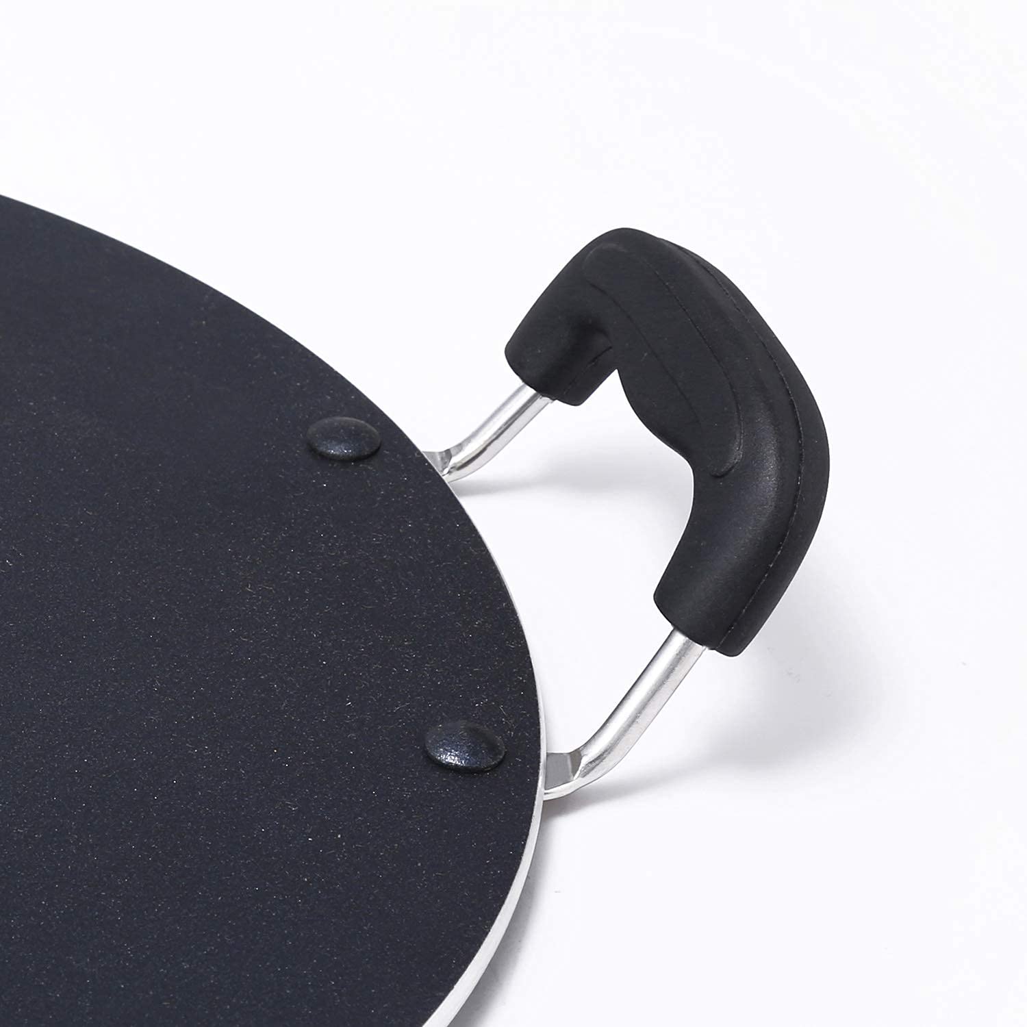 Details: Experience the ultimate versatility in your kitchen with the Anjali Multi Tawa Deluxe Platinum Flat Tawa. This product has been beautifully designed to add grace to your kitchen experience.Low calorie cookware for good health. Internally reinforced 2 coat technology.Superior Quality Non-Stick Coating and Bakelite Handles for easy use grooved bottom for even distribution of heat.Crafted with a heat-resistant sturdy 2-side handle, this flat tawa ensures safe and comfortable handling while cooking. Whether you’re flipping pancakes, searing steaks, or making delicious dosas, this tawa provides the perfect grip and control you need.The triple coating non-stick surface guarantees effortless food release and easy cleanup. This tawa is built to withstand daily use and is compatible with gas stoves.