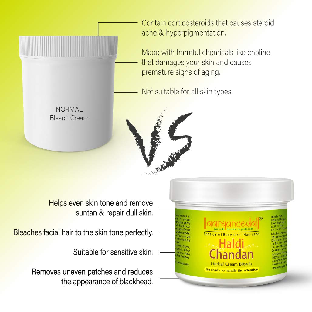- RESTORES NATURAL GLOW :- The haldi chandan bleach is an effective herbal bleach cream that helps to bring back the natural glow of your skin with the help of natural extracts of haldi and chandan.
