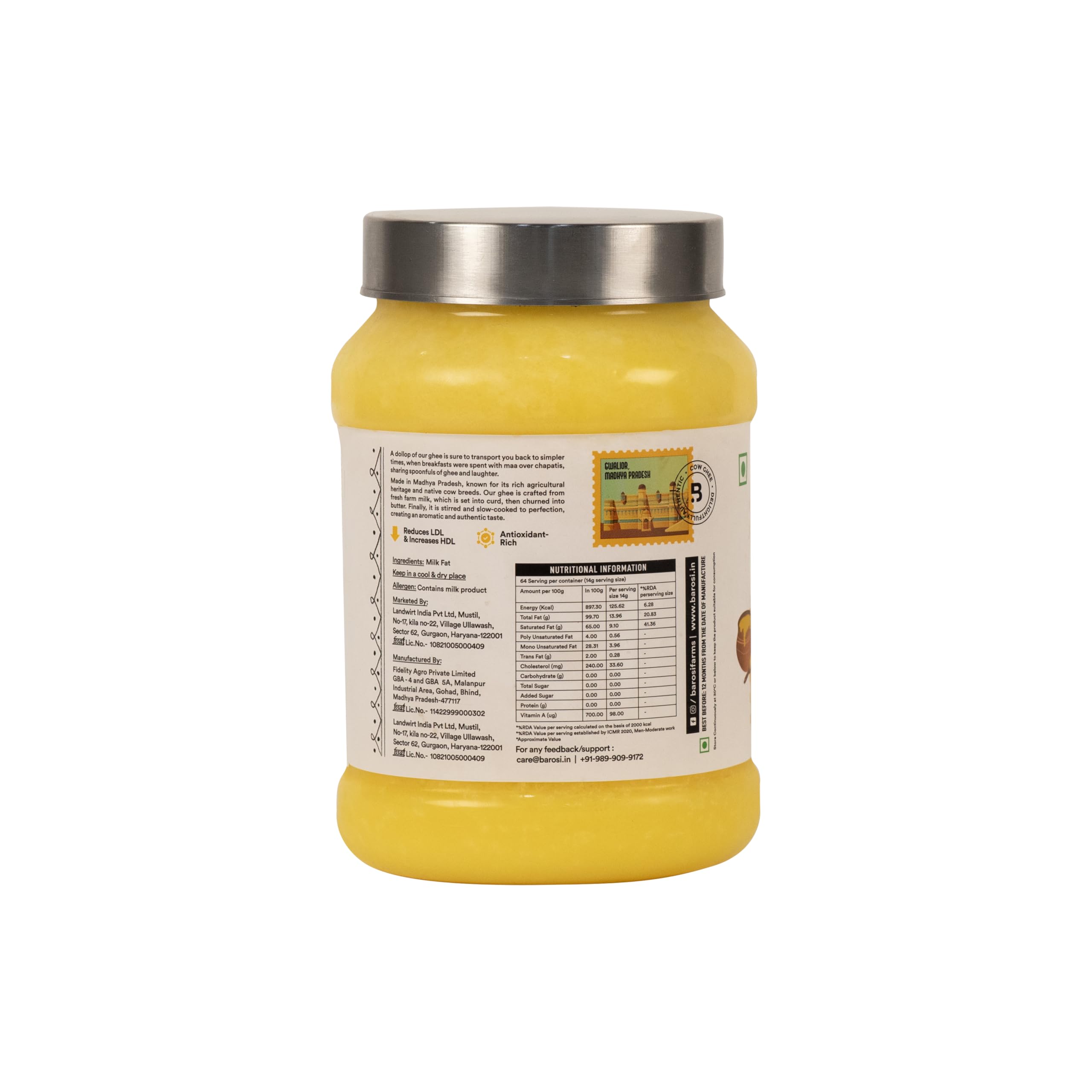 - 100% NATURAL & PURE:Barosi Cow Ghee is made from the fresh, pure milk of grass-fed desi cows. Our ghee is prepared to ensure the highest freshness and quality. It preserves its natural richness, making it a wholesome and healthy choice.