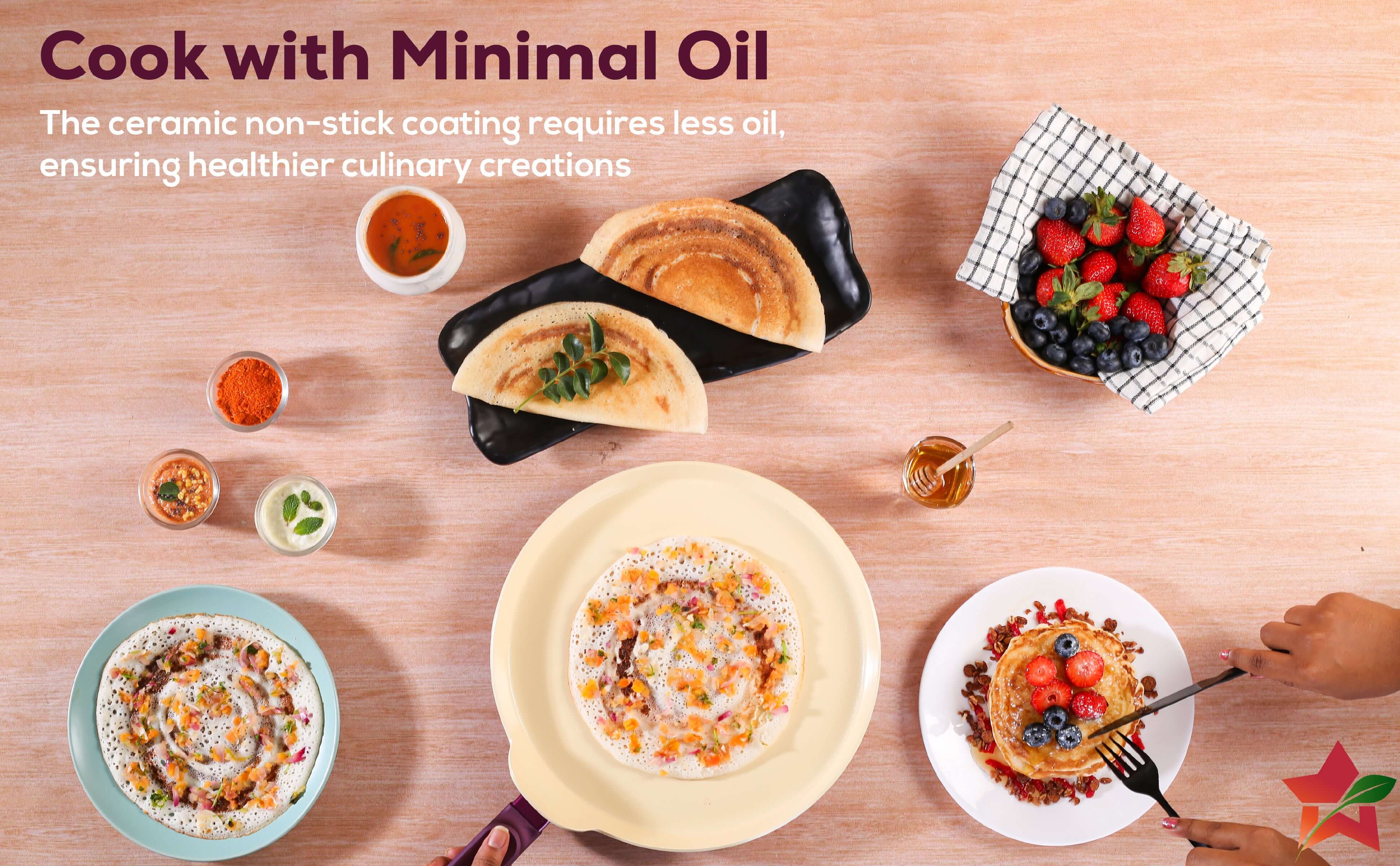 - The Dosa Tawa comes in deep purple, adding a touch of elegance and appeal to your kitchen.