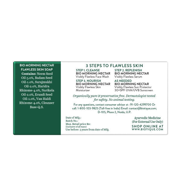 Neem Seed Oil, Badam Seed Oil, Surajmukhi Oil, Haridra Rhizome, Narikela Oil, Erandi Seed Oil, Van Haldi Rhizome, Cleanser BaseQ.S.