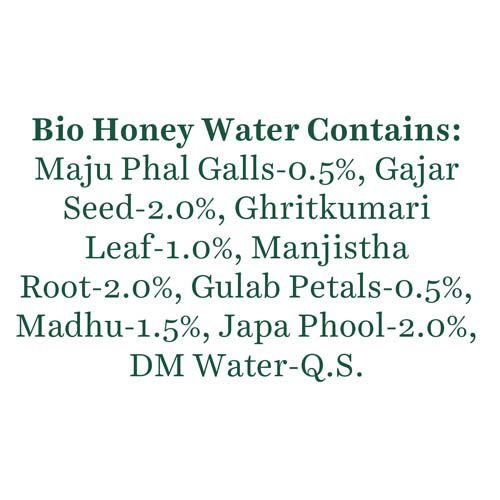 Maju Phal Galls, Gajar Seed, Ghritkumari Leaf, Manjistha Root, Gulab Petals, Madhu, Japa Phool, DM WaterQ.S. |