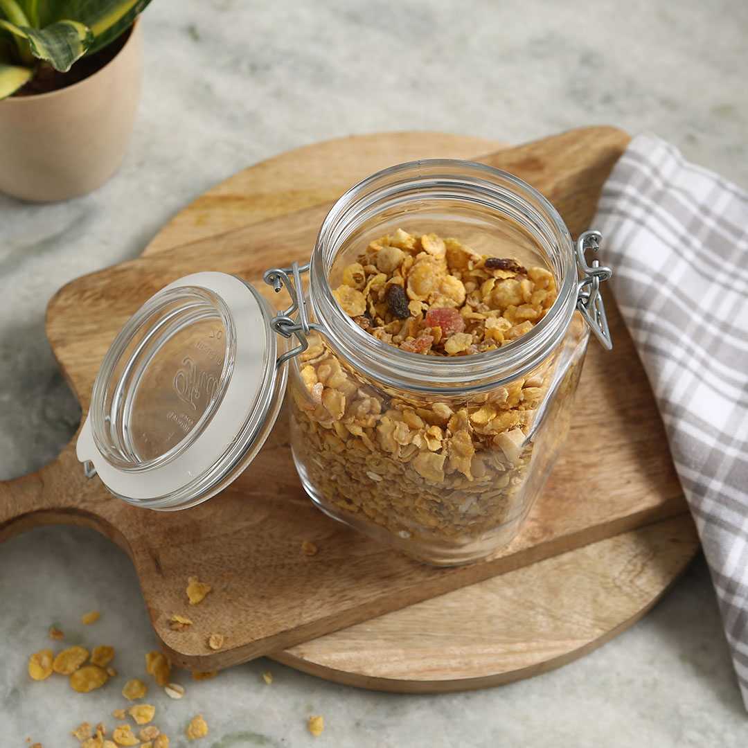 With clear round glass jars, store spices, herbs, teas, jams, flour, crackers, snacks, pasta, coffee, rice, sugar, to smaller servings of cereal. You can use these BPA free containers for fridge  and freezer storage. Also great for storing loose household items, crafts, and toys. These Wonderchef Bormioli Glass jars are highly versatile and come in handy all the time.